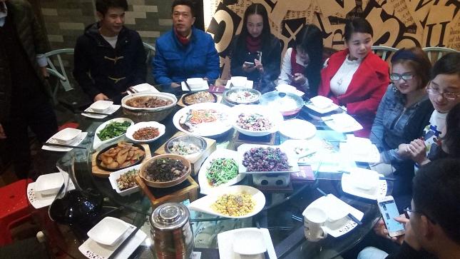 傍晚,在總經理的召集下,我們全體人員聚在了酒店下。酒桌上,我們放下了平日里的緊張與壓抑,總經理也放下了平日的威嚴與應有的姿態,我們把酒言歡,玩笑不斷,一幕溫馨祥和的氣氛。